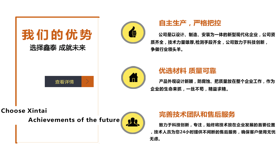 我公司基于“用戶的利益高于一切,一切為客戶著想”的服務宗旨。長期以來,公司始終堅持“以質量為本,信譽至上為經營宗旨”竭誠為新老客戶服務。